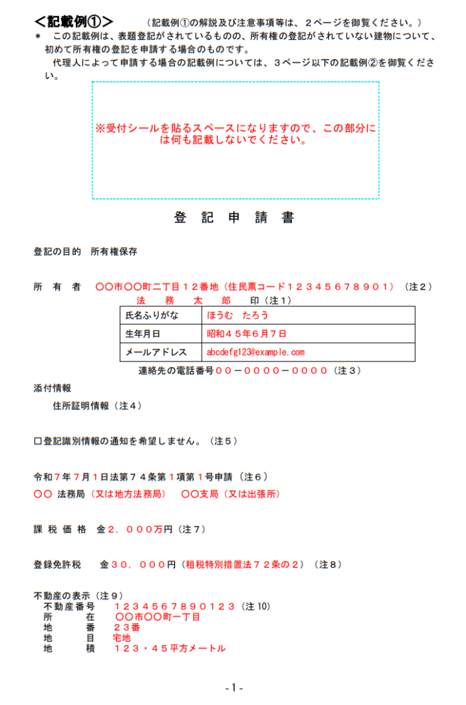 登記申請をする不動産の情報を記載例のように記載して下さい。